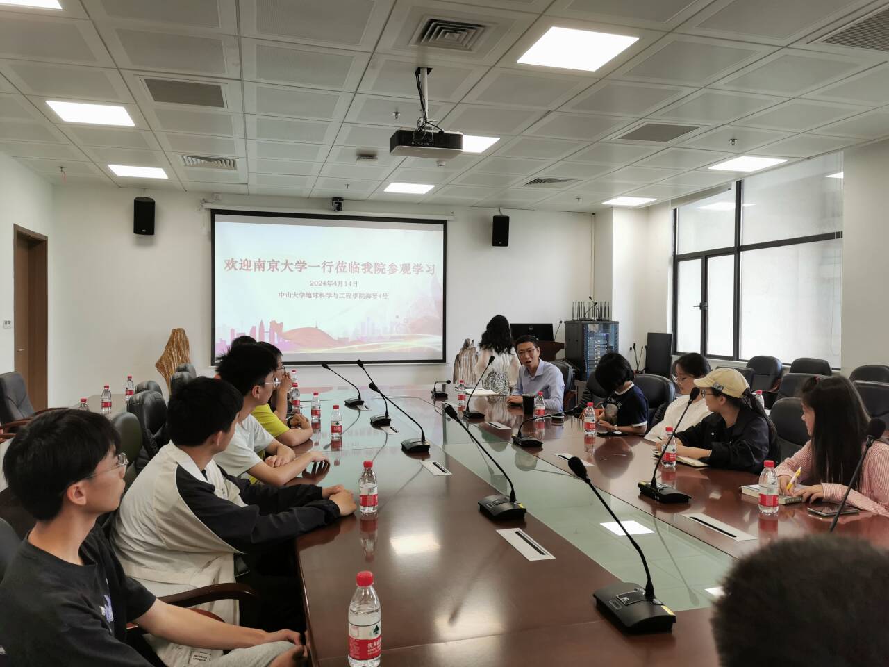 参观之后,大家来到会议室,王玉琨老师详细地介绍中大地科院的师资力量、学科发展以及人才培养情况。周斌老师和白若蓉老师也向中大的学生们介绍了新葡的京集团350vip8888官网地科院的各项情况。南大校友刘志超老师还介绍了中大地科院的几个研究方向并启发了同学们思考利用新技术运用于新地学的方式和方法。