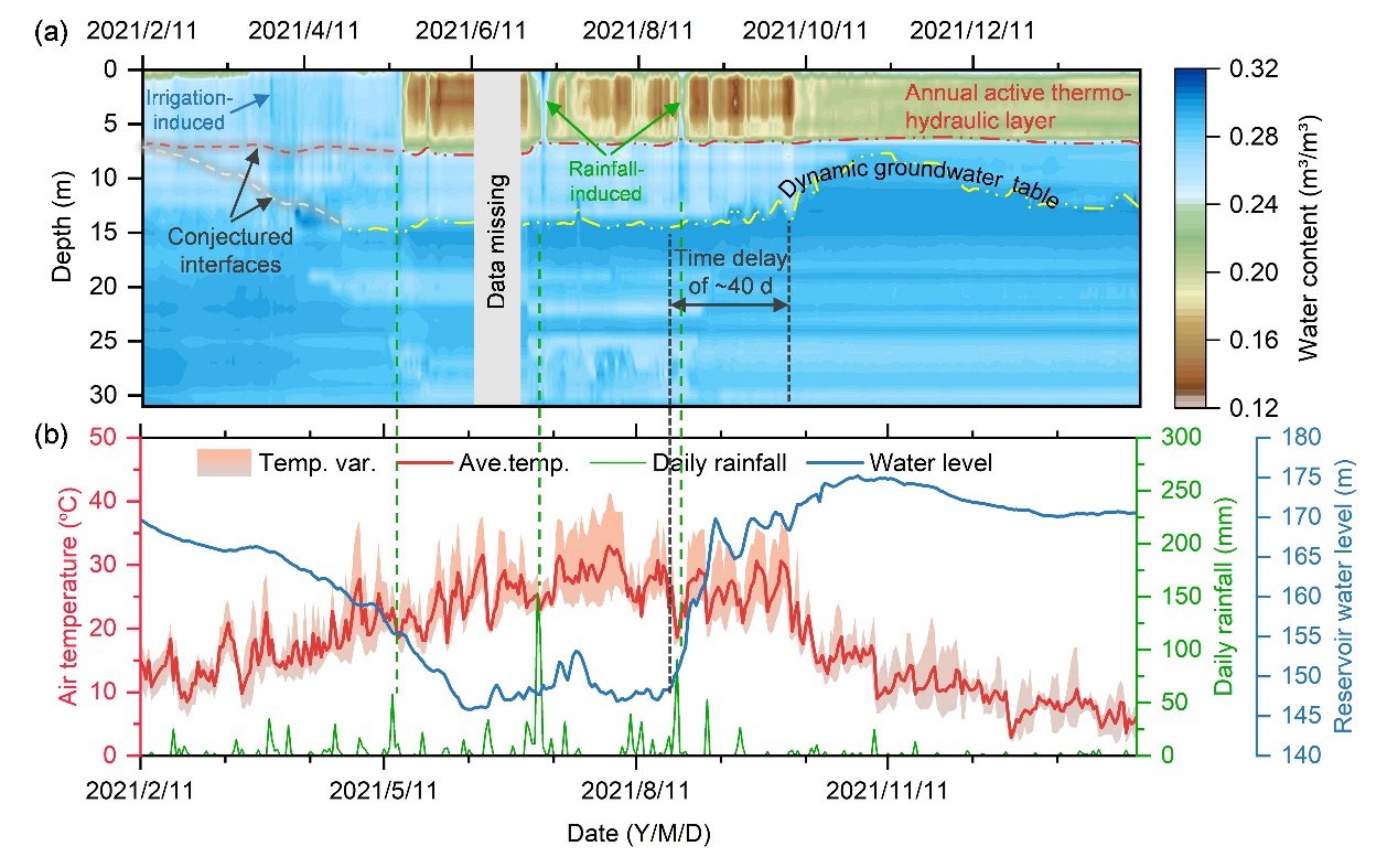 近日,新葡的京官网朱鸿鹄教授课题组运用高时空分辨率的光纤传感神经技术,实现了长江三峡库区滑坡地下热-水-孔隙-力响应特征的精准识别,揭示了地下水位动态变化加速滑坡变形的内在机制,从而提供了洞悉滑坡灾变演化规律的新视角。本研究选取位于重庆奉节县的特大型滑坡——新铺滑坡为研究对象(图1),通过安装于现场钻孔中的多参量感测光缆,远程实时监测岩土体温度、含水率、孔隙水压力和应变等物理参量(图2、3)。长期监测数据显示,相较于干旱年份,湿润年份中滑坡更为活跃;地下水位在9~15m深处的动态变化诱发岩土体应变发生周期性的累积与回弹响应,揭示了降雨和水库调度对工程地质界面行为以及滑坡稳定性的显著影响。这项研究为掌握库岸滑坡内部关键界面的灾变演化规律提供了新的思路与技术手段,相关发现对于提升三峡库区滑坡的监测预警和应急处置水平具有重要的指导意义。